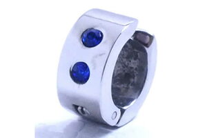 サファイアカラーのキュービックジルコニアをセットしたステンレス製のイヤーカフ。イヤリングなのに装着するとピアスにしか見えません。挟むだけで簡単に装着でき、素材も安心のサージカルステンレスなので、安心。装着するだけでま