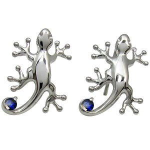 9月誕生石サファイアを一粒使用したプラチナ製の可愛いヤモリモチーフピアスです。 ※両耳セット価格です。 ※スタッドピアス(シリコンキャッチ付)に変更もできますのでプルダウンからご選択ください。 本体素材:...