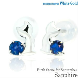 素材:K10ホワイトゴールド 主石:天然サファイア 2.5mm 寸法:約6.0×4.7mm ポスト:0.65φ9.5m 重量:約0.30g(ペア) 愛らしい子猫をイメージしたチャーミーなフォルムのキャットピアス。子猫らしい少し...
