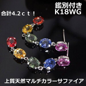 P E C■ 商 品 名 鑑別付きk18WGマルチカラーサファイア4.2ctロングピアス■9824 使用貴金属 K18WG 使 用 石 天然マルチカラーサファイア5p合計4.2ct 重 量...