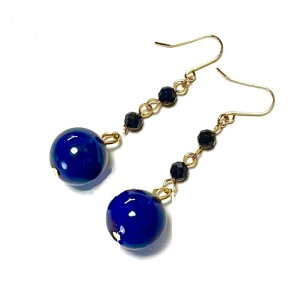 ★深みのある美しい瑠璃色のラピスラズリとブルーサファイアのカット石を使用した、オシャレなフックピアスです。 壮大な宇宙を感じさせる神秘的なラピスカラーと上品なサファイアブルーが、耳元で優