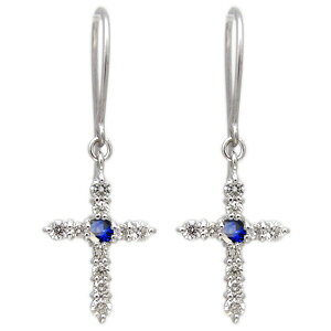 9月誕生石サファイアを使用したプラチナ製の、クロス(十字架)モチーフピアスです。 ※両耳セット価格です。 本体素材: プラチナ(Pt900) (品質を保証するPt900の刻印があります。) 石名:主石...