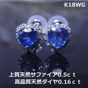 ■S P E C■ 商 品 名 K18WGハートサファイアダイヤ取り巻きピアス■4935S 使用貴金属 K18WG 使 用 石 天然サファイアハートシェイプカット0.5ctUP 天然ダイヤ0.16ct...