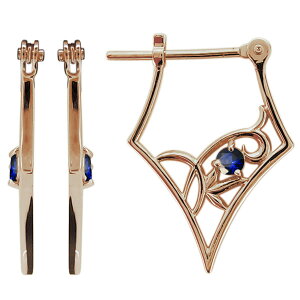 9月誕生石サファイアを使用した10金製の、唐草(アラベスク)モチーフクロッシングピアスです。 ※【10金カラー3色から】お選び頂けます。 ※両耳セット価格です。 本体素材:K10ピンクゴールド/K10...