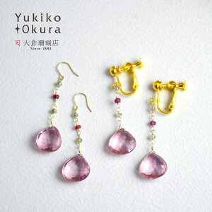 ピンクのクォーツのハートカットにあわせピンクやライトグリーンのサファイヤが揺れてきらめきます。 落ち着きのある可愛いイヤピアです。 こちらのチャームとセットでお使いいただけます。 サイズ:約3.5cm(金具含まず) 素材:K10・ク