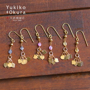 サファイアとゴールドのパーツを組み合わせたロングイヤリング・ピアス。サファイアの下には、変形のハートのようなキュートな形のゴールドパーツをフリンジタイプにして留めました。華奢なデザインにフリンジのボリューム感がプラス