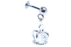 王冠のモチーフの中にジルコニアを閉じ込めた高級感のあるヘリックス・トラガスピアス。クラウンのチャームが揺れるたびにキラキラ輝くジルコニアが綺麗。内径サイズも豊富なので、ヘリックスやトラガス、コンク、もちろん耳たぶにも