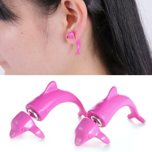 ピンク色のイルカをデザインしたバックキャッチピアス。ピアス全身でドルフィンをデザインしたバックキャッチピアスはどの角度から見ても可愛い。ピアス屋さんが作る本気のおもちゃピアス。完成度も高いオススメののピアスはプレゼン
