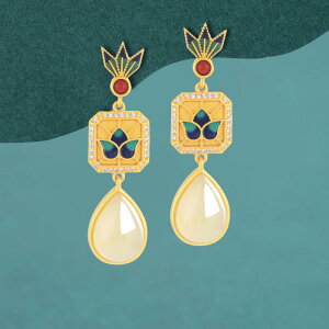・カテゴリ: ピアス・イヤリング・スタイル: 文芸レトロ・素材: 925シルバー、和田玉・加工方法: 玉象嵌・形状: ドロップ・カラー: ゴールド・対象: レディース