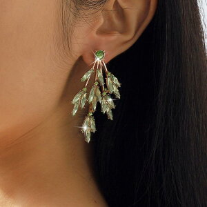 ・カテゴリ: ピアス・主な素材: 合金、ラインストーン・加工: 電気メッキ・モチーフ: 葉、幾何学模様・デザイン要素: ライン・カラー展開: グリーン、ローズレッド、ピンク・スタイル: スウィートクール...