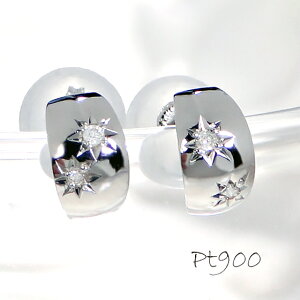 ☆プラチナの丸みを帯びたベースに、2石のダイヤモンドを星のような彫り留めでセットした、チャーミングなピアスです。多方面から光を受けて美し