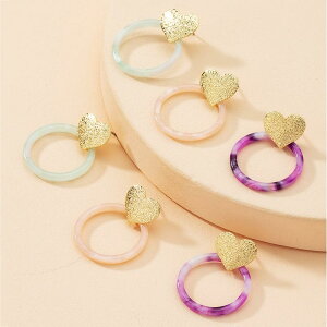 ・素材: プラスチック/樹脂・デザイン: ハート型・カラー展開: ピンク、グリーン、パープル・スタイル: エスニック、レトロ、幾何学・カテゴリ: 耳飾り