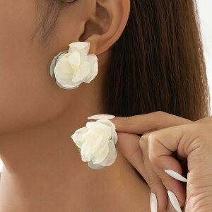 ・カテゴリ: ピアス・スタイル: 清新スウィート・素材: 布・形状: 花・デザイン要素: 花、椿・加工: 手作り・カラー展開: ホワイト, ピンク, パープル, イエロー・対象: 女性
