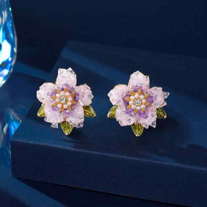 ・カテゴリ: ピアス・イヤリング・スタイル: フレッシュスウィート・対象: レディース・素材: 銅・加工: クリスタル装飾・モチーフ: 花、椿・カラー: ライトパープル