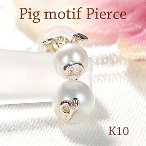 ☆淡水パール×アニマルモチーフの大人可愛いピアス♪ 清楚な艶めきを放つ2粒の淡水パールに、K10ゴールドで耳・鼻・口・しっぽを表現。キュートなブタさんデザインのピアスに仕上げました♪愛らしいフォル