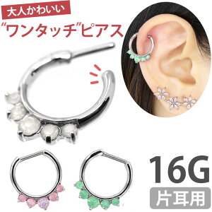 16Gのセグメントクリッカーピアスです。なめらかなラインにカラーを添えたシンプルで洗練されたデザイン。サージカルステンレス製で水や汗にも強く、日常使いにもぴったり。ワンタッチで着け外ししやすく、耳たぶや軟骨など多用途に楽
