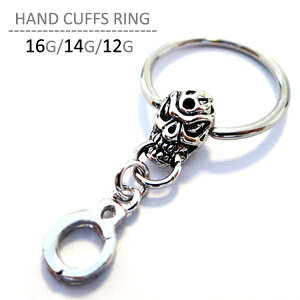 【商品名】ハンドカフスリング 16G 14G 12G ホールをインパクトたっぷりに飾るチャーム付きのビーズリング。 ビーズ部分がスカルになっているハード感のあるデザインのボディピアス。 手錠型のチャームがクールに耳ピアス...