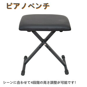 高さの調節が可能なキーボード用ベンチ。コンパクトに折りたたみも可能なので、使用しない時の収納にも困りません。・キーボードやピアノだけでなく、ギターやチェロ、二胡など