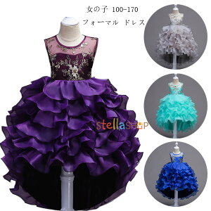 ピアノ発表会 ドレス フォーマル ドレス 女の子 結婚式 ドレス パーティドレス 入園 入学 ドレス 演出 発表会 姫系 ドレス 子供用 ウェディングドレス 前後丈 花の刺繍 ドレス パープル グレー...