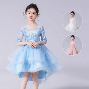 ピアノ発表会 ドレス 女の子 結婚式 ドレス 前後丈 フォーマル ドレス 新品 新作 子供用 ドレス ピンク ブルー イエロー ウェディングドレス 花の刺繍 ドレス 発表会 入学式 卒業式 受験用 七五三...
