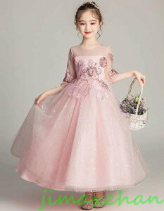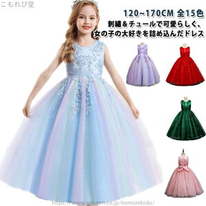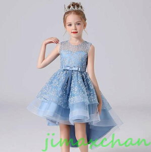 120~170CM 全15色刺繍&チュールで可愛らしく、女の子の大好きを詰め込んだドレス発表会にピッタリステージで映えする!ふんわりと空気を纏ったチュール生地。ドレスの裾にはスパンコールが付いており動...