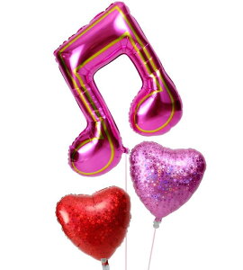 名前入れができるミニ音符のバルーン花束の紹介 ・花束型タイプ ・嬉しいお名前入れサービス! ・特別な熱加工済バルーンを使用 ・約2ヶ月以上〜長持ちで長期間飾れます。 ・手に持ってお写真が撮りやすく、持ち運びにも便利な花束型 名