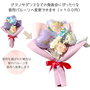 大切な方へ想いを届けるバルーンギフト。 音符バルーンを使用した発表会等におススメのバルーンバンチ(ブーケ)です。 それぞれのカラーを1つずつ選べるのでオリジナルのブーケが作れます 発表会はもちろん、お誕生日、結婚