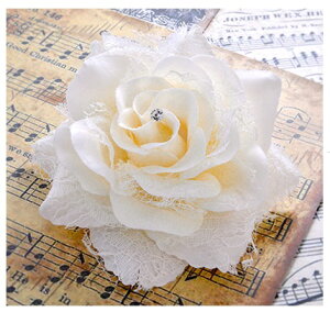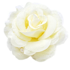 この繊細な髪飾りは、結婚式や発表会、入園・入学式など特別な日の装いを一層引き立てます。 美しい薔薇の形をしたデザインは、柔らかなオーガンシー素材で仕上げられ、中心にはきらめく装飾が施されています。 その繊細な造りは...