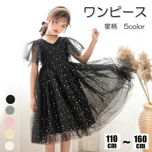 送料無料 キラキラな星柄チュールの夏ワンピー!キッズワンピー ロング丈 ふわふわ 子供ドレス 110cm 120cm 130cm 140cm 150cm 160cm