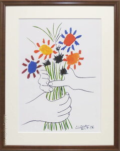 【画 題】ブーケ(アートポスター) 【解 説】この作品は、1958年ストックホルムで開催された平和会議のために、ピカソが描いたポスターの図柄部分を復刻したものです。花束をかかえている二つの手は、一人の左右の手ではなく...