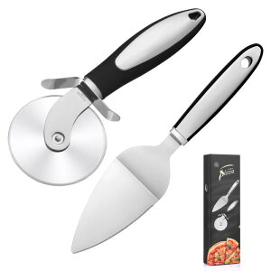 ピザカッターとパイサーバーのセットピザやパイ生地などをカットするのに便利なホイールカッターです。安定した回転刃でピザがきれいに切れます。使い手を考えたしっかりとつかみやすいハンドル形状。錆びにくいステンレス素材を使用