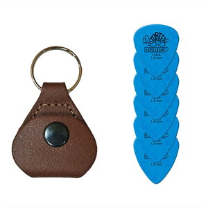 キーリング付きのレザー製ピックホルダー。スナップボタン留めタイプ。 キーホルダーなどに簡単に取り付け出来ます。 外寸:H48mm×W44mm(金属部分除く) 内寸:H33mm×W33mm 材質:レザー...