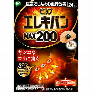 ピップ エレキバンMAX200 24粒入 商品説明 磁力で血行改善し、コリに効く!! 大型円錐磁石で頑固なコリに広範囲に効く!