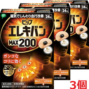 ピップ株式会社 名称 ピップエレキバン200 24粒 内容量 24粒 商品説明 大型円錐磁石を使用。磁気が広い範囲に浸透。筋肉組織の血行を改善。