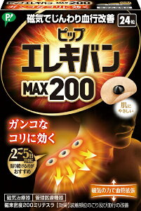 商品情報商品説明ピップエレキバン200内容量24粒商品説明エレキバン史上最大磁力でガンコなコリに効く!磁気が体内に働きかけ、血行を改善して、老廃物を流し、コリをほぐす。におわず目立ちにくい。貼ったまま入浴できる薬剤を使わな