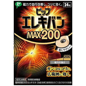 商品名:ピップ エレキバンMAX200 24粒入内容量:24個ブランド:ピップカイハツ原産国:日本磁束密度200ミリテスラ。筋肉組織の血行をよくし、緊張をといてコリをほぐす、大型円錐磁石を使用し磁気が広い範囲に浸透...