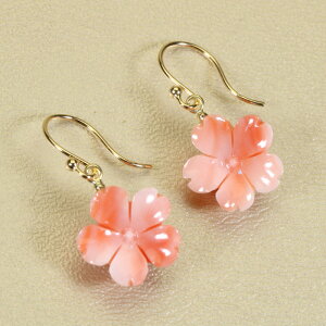 珊瑚の種類:ピンク珊瑚 金具の種類:K18 玉のサイズ:4.8mm ・K18で花の形をデザインしピアスの中にピンク珊瑚の玉を合わせている。 更に可愛さを演出してくれる一品...