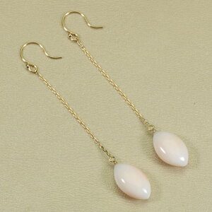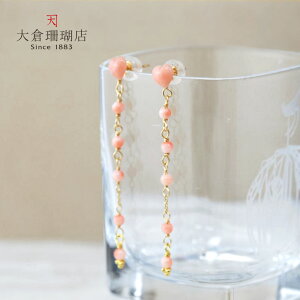 深海珊瑚のシンプルな揺れるピアス。深海1000m以上の深い深い海底で育まれる深海珊瑚。 そのニュアンスあるピンクカラーの深海珊瑚をドロップ型にカット。繊細な18Kのチェーンに下げた揺れるタイプのピアス。