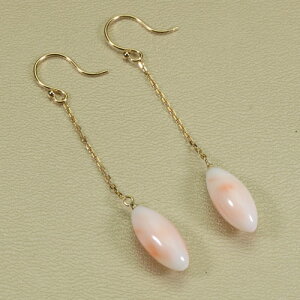 【サンゴ】6mm×14mm 【ピアス針】直径0.6mm 重さ 1.9g 金具素材 K18 イエローゴールド 珊瑚種類 深海珊瑚 ミッドウェー産 商品説明 深海珊瑚特有のピンクの模様が有り、とても綺麗な色のライス形の珊瑚...