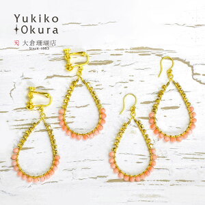 ドロップ型のフープに、小粒の深海珊瑚とメタルビーズを巻きつけたイヤリング・ピアス。 肌なじみのよいやさしいピンクで柔らかい印象に。 メタルビーズがピリッとアクセントになっています。 フープは程よい大きさで...