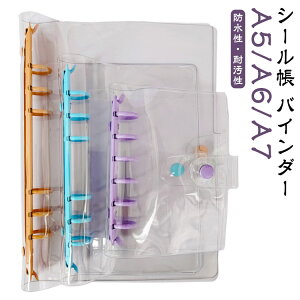 【シール帳 バインダー】【A5/A6/A7】透明感のあるPVC素材を使用した活用度抜群のバインダー用カバー。防水性・耐汚性に優れ、汚れてもサッと拭くだけでお手入れ簡単。しっかり留まるスナップボタン付きで、ノートや手帳をしっかり保護。A