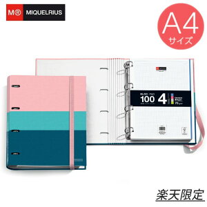 <厚紙表紙>【宅配便のみ】A4サイズの4つ穴Dリングバインダー!快適な書き心地の方眼ルーズリーフ100枚付き!