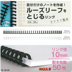 自分だけのA4 30穴のオリジナルルーズノートを作成! ルーズリーフを閉じるリング! 品名: ルーズリング 10mm 50本入り 品番: LR-30105 ブラック-K、ホワイト-W サイズ: 約)幅...
