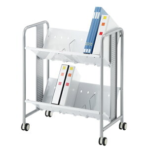 書籍やファイル類の収納・整理・運搬に便利な、2段傾斜タイプのファイルワゴンとなっております。 収納スペースを少し傾斜させることで、収納した書籍やファイル類を取り出しやすくなっています。 また、キャスターには移動の際に比較的静かで床に傷...