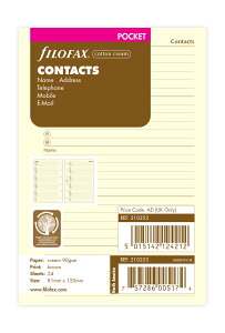 商品情報商品説明コットンクリーム色のリフィルで連絡先を管理しましょう。名前、住所、電話番号、携帯電話番号、Eメールアドレスを記入できます。メーカー名ファイロファックス / fILOFAXサイズミニ5穴サ...