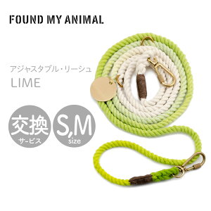ファウンドマイアニマル アジャスタブル・リーシュ(リード)LIME/ライム S,Mサイズ ●材質:ロープ/コットン100%(ワックスキャンパス)、金具・タグ/真鍮(ナスカンタイプ) ●長さ:(S,M)約210.0cm...