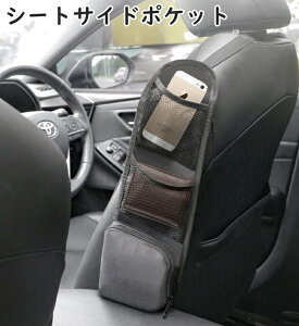 車内の小物整理に便利なシートサイドポケット。 スマホや財布を入れるのにぴったりなメッシュ&ファスナーポケットです♪ 【サイズについて】 画像をご参照ください。 【カラーについて】 生産ロットにより柄の出方や色の濃淡が異なる場