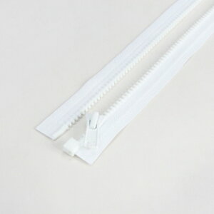 4VS ビスロンオープンファスナー60cmです。 閉じた状態での樹脂部分のサイズは約5mm幅となります。 ブルゾン、パーカー、ジャージの上着等の衣装前あき部分の使用に最適です。 オープンファスナーのためスライドを下までおろすとファ