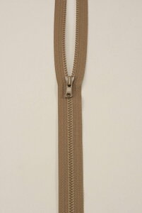 中厚手の生地に適したスタンダードな樹脂ファスナー。スライダーを一番下まで下ろすことで、左右のテープ(チェーン)を離すことができるタイプです。同サイズの金属ファスナーに比べ軽いのが特徴です。
