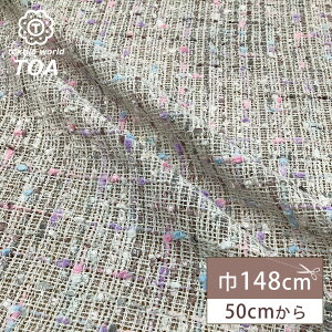 華やかさを纏うファンシーツイード 多彩な糸を織り合わせた上品なファンシーツイード生地です。 色や素材の違う糸をミックスすることで、立体感と奥行きのある表情を実現。 ジャケットやスカート、ワンピースなどフォーマルな装いにぴ